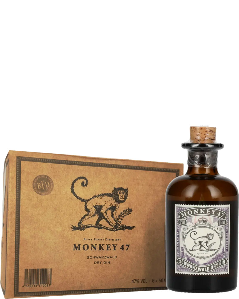 Dry Gin prodotto in Germania dalle Black Forest Distillery, distilleria ai piedi di una delle più belle vette della Foresta Nera, luogo ricco di ingredienti e di mistero. 47 gradi alcolici per 47 erbe e spezie, acqua rigorosamente della foresta nera, doppia distillazione e invecchiamento in contenitori di terra cotta, nessun filtraggio finale. La ricetta viene fatta risalire al comandante della Royal Air Force Montgomery Collins che era di stanziamento alla Berlino del dopoguerra. Qui supervisionò la ristrutturazione di diversi edifici fino a ritirarsi in uno GuestHouse a nord della Foresta nera. Tempo dopo Alexander Stein e Christoph Keller hanno riportato alla luce la ricetta contenuta in una scatola raffigurante la scimmia Max, da cui riprende il nome e l’etichetta del Gin.