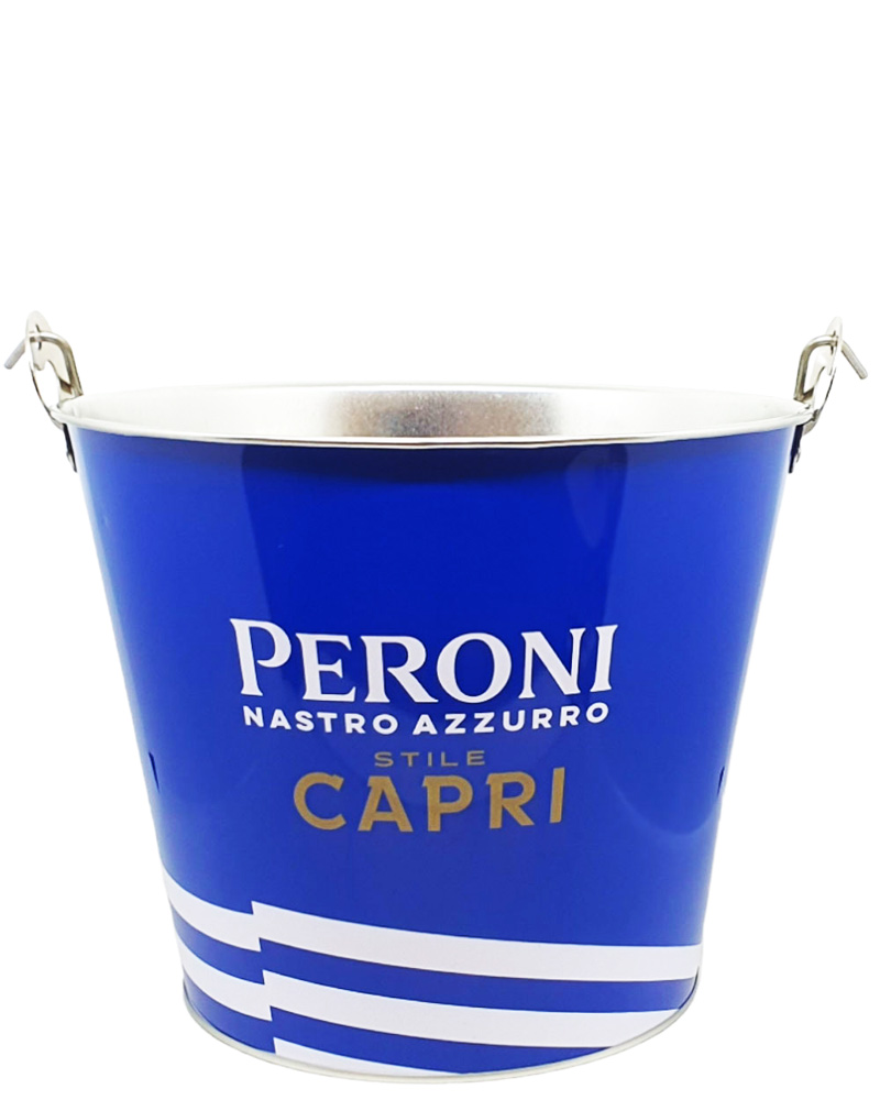 Secchiello portabottiglie in metallo birra Peroni Capri Nastro Azzurro. Può contenere ghiaccio.