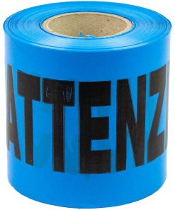 Nastro blu segnaletico “ATTENZIONE TUBO ACQUA” in materiale plastico, non adesivo.