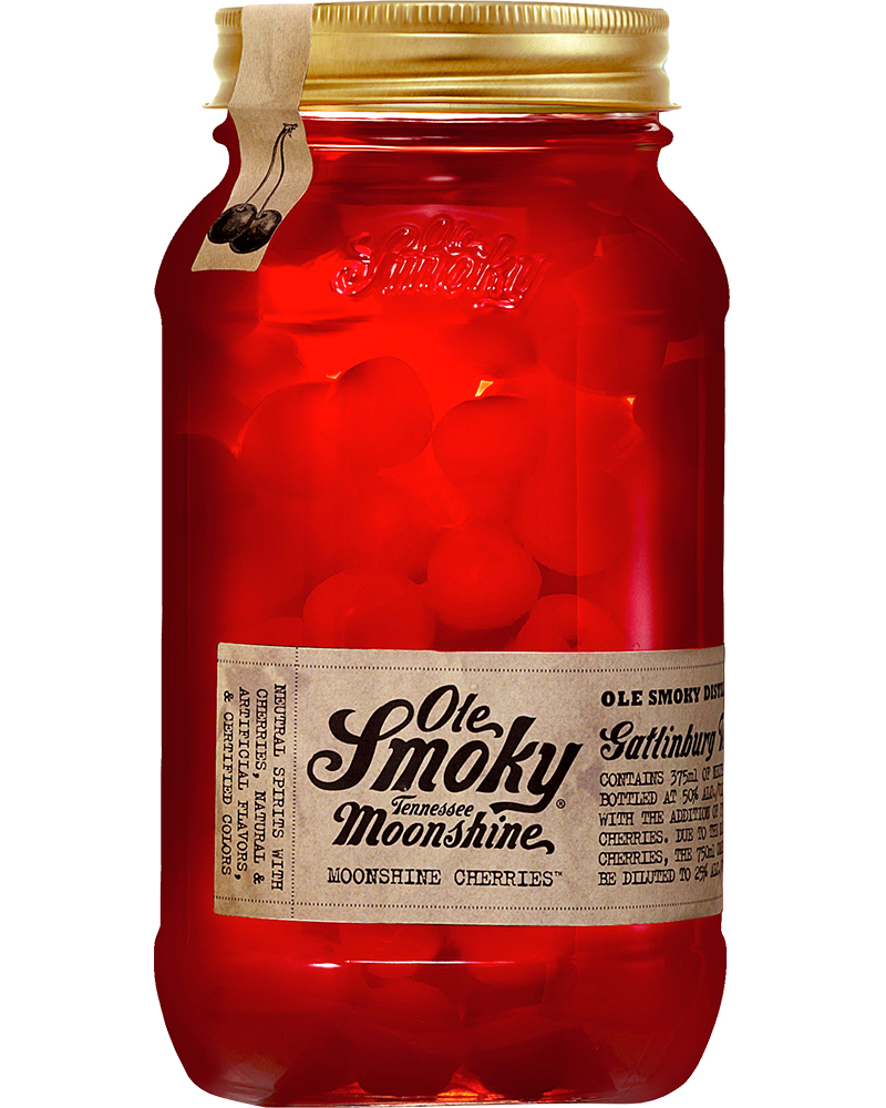 Ciliegie di tipo maraschino imbevute con il dolce Moonshine Original, che può essere consumato dopo aver estratto tutti i frutti dal vasetto. Le ciliegie cedono zuccheri e assorbono l’alcol del whisky, diventando una deliziosa guarnizione da cocktail. Il prodotto viene realizzato dalla Ole Smoky, la prima distilleria federale con licenza ad aprire nell’est del Tennessee. “Moonshine” è il termine dato al whisky distillato clandestinamente e in uso durante il periodo del Proibizionismo americano. Il whisky che accoglie le ciliegie è un distillato di mais senza invecchiamento e dal colore trasparente. Con il suo barattolo in vetro tipicamente usato dai distillatori illegali.