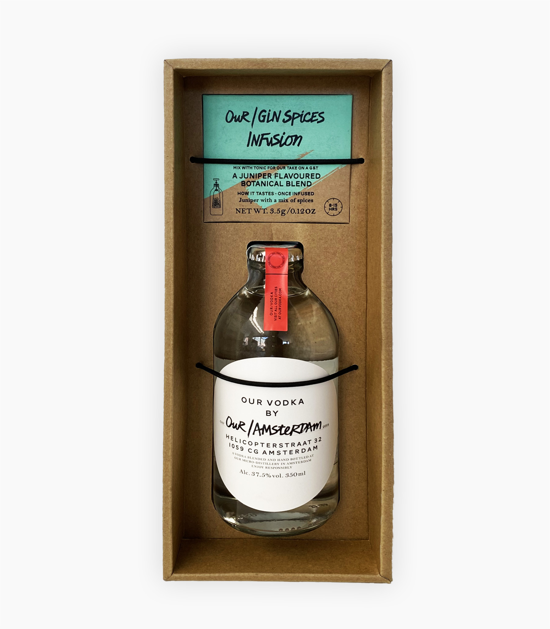 Ogni Our Vodka viene accompagnata da un kit di infusione “fai da te”, grazie a cui chiunque può trasformare la propria bottiglia Our/Vodka in qualcosa di nuovo. Questo infuso (che può essere di quercia, ginepro, agrumi o tè) è contenuto in una bustina che ricorda quella del tè e deve essere lasciato nella bottiglia per un tempo dalle 8 alle 15 ore per far sì che la vodka assorba appieno tutte le note dell’infuso.