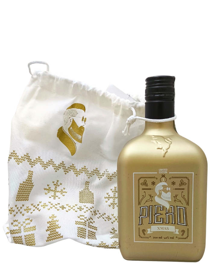 Dry Gin artigianale italiano in versione Limited Edition per il periodo natalizio 2024 con sacchetta di stoffa bianco e oro. Il gin è stato realizzato dal fondatore Gianpiero con una ricetta originale frutto della sua esperienza di viaggiatore in giro per il mondo. I profumi e le sensazioni riportate dal Sud-America e dalla Spagna lo convincono a realizzare un gin personale e rappresentativo di un gusto internazionale, con un profilo estetico di design tutto italiano. Piero Dry Gin è un prodotto particolare che alla tradizione aggiunge un ingrediente segreto che dona mistero e un gusto unici.