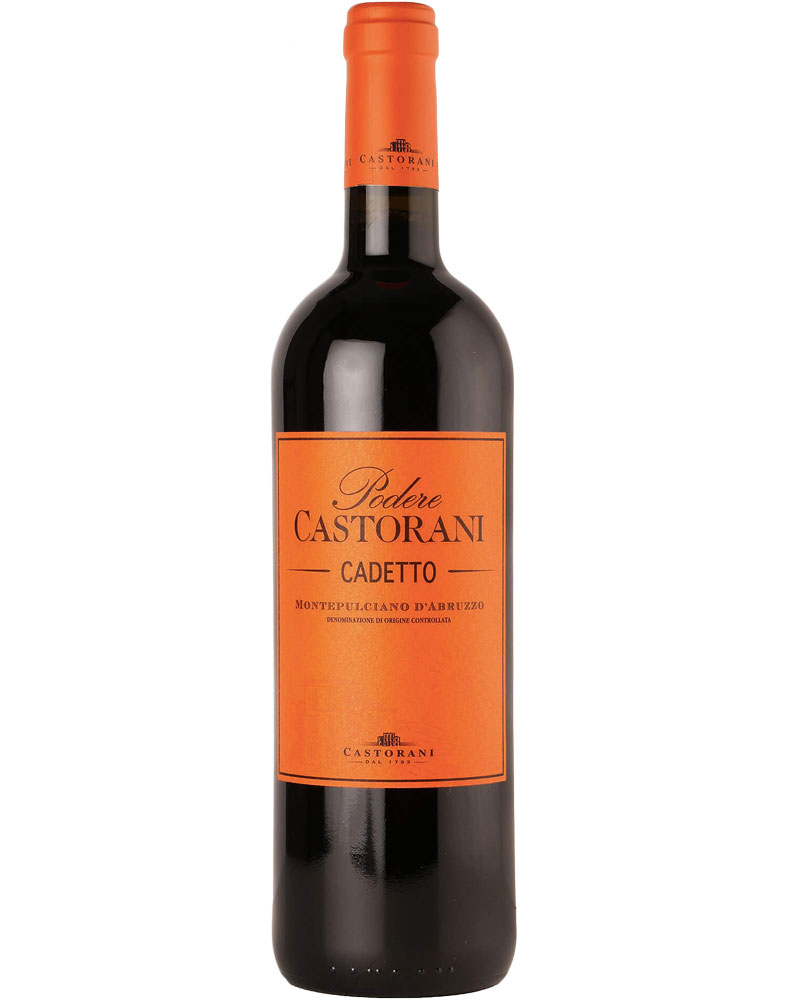 Montepulciano d’Abruzzo DOC della linea “Cadetto” dell’azienda Castorani di Jarno Trulli, realizzato da uve Montepulciano 100% di superba qualità, coltivate con tendone tradizionale abruzzese, nel comune di Alanno, in Provincia di Pescara dove i vigneti, incastonati tra il parco Nazionale della Majella e la vicina costa adriatica, godono di un’ottima esposizione al sole e ai venti notturni, e di escursioni termiche tra il giorno e la notte che donano alle uve caratteristiche uniche e preziose. Vinificato in vasche con fermentazione a 26ºC a cappello galleggiante con frequenti rimontaggi, per poi essere affinato 12 mesi in vasche di cemento.