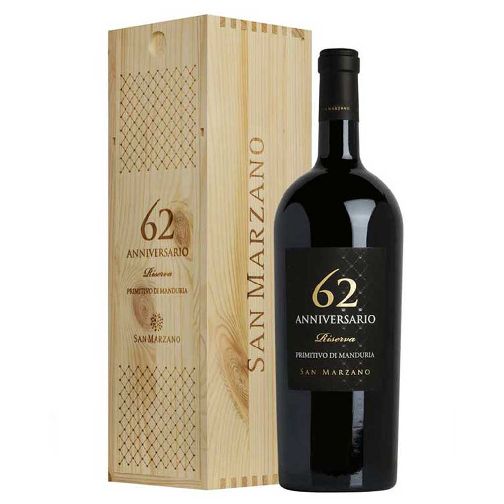 Il Primitivo di Manduria Riserva Anniversario 62 Magnum è prodotto da antichissimi vigneti selezionati nel territorio di San Marzano e Sava. Queste aree sono caratterizzate da terra rossa residuale, a tessitura fine (carica di ossidi di ferro) e generalmente con substrato calcareo e presenza di radi affioramenti rocciosi. Le temperature sono tipiche di un ambiente piuttosto caldo, con piovosità annua molto bassa e escursioni termiche molto elevate. Sono queste le condizioni benefiche per la qualità di queste uve. È questa la zona classica di produzione della d.o.p. Primitivo di Manduria.