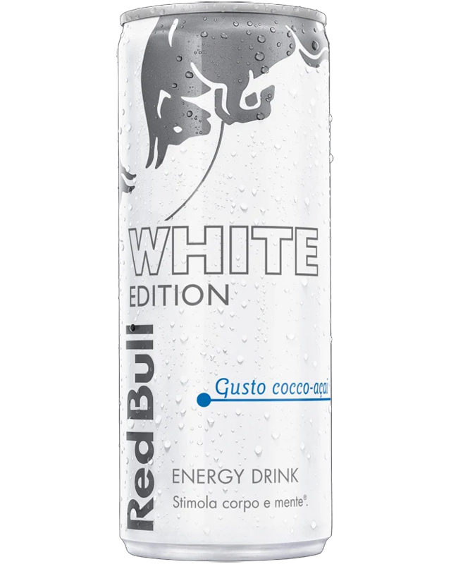La bevanda energetica più conosciuta al mondo presentata oggi nella versione white edition con un gusto nuovo e stimolante al cocco dell’acai. Il sapore classico si arricchisce della particolare nota fruttata e fresca del cocco.