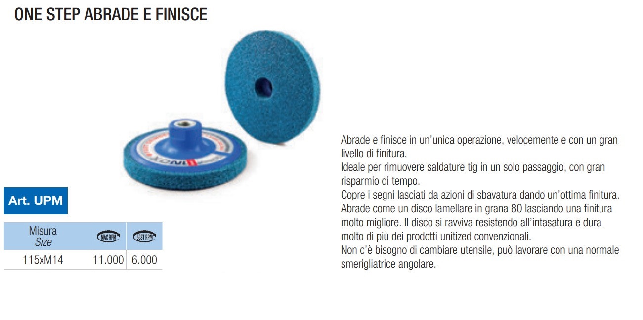 ROSVER UPM DISCO DISCHI ONE STEP PER ABRASIONE E FINITURA FORO M14 Ø115 PER INOX