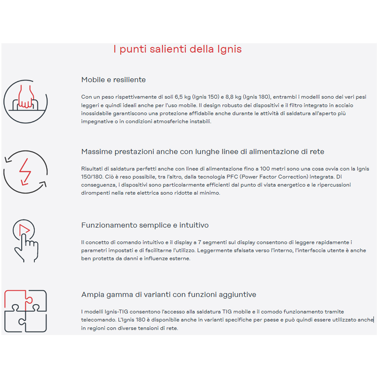 L’Ignis 150 EF è dotata di un sistema inverter MMA che offre prestazioni superiori.