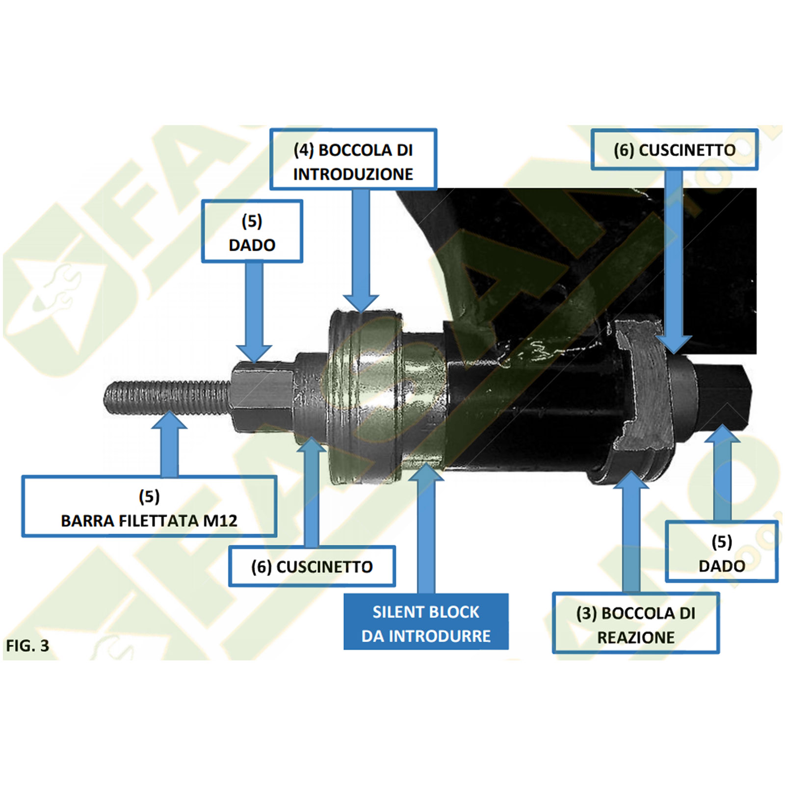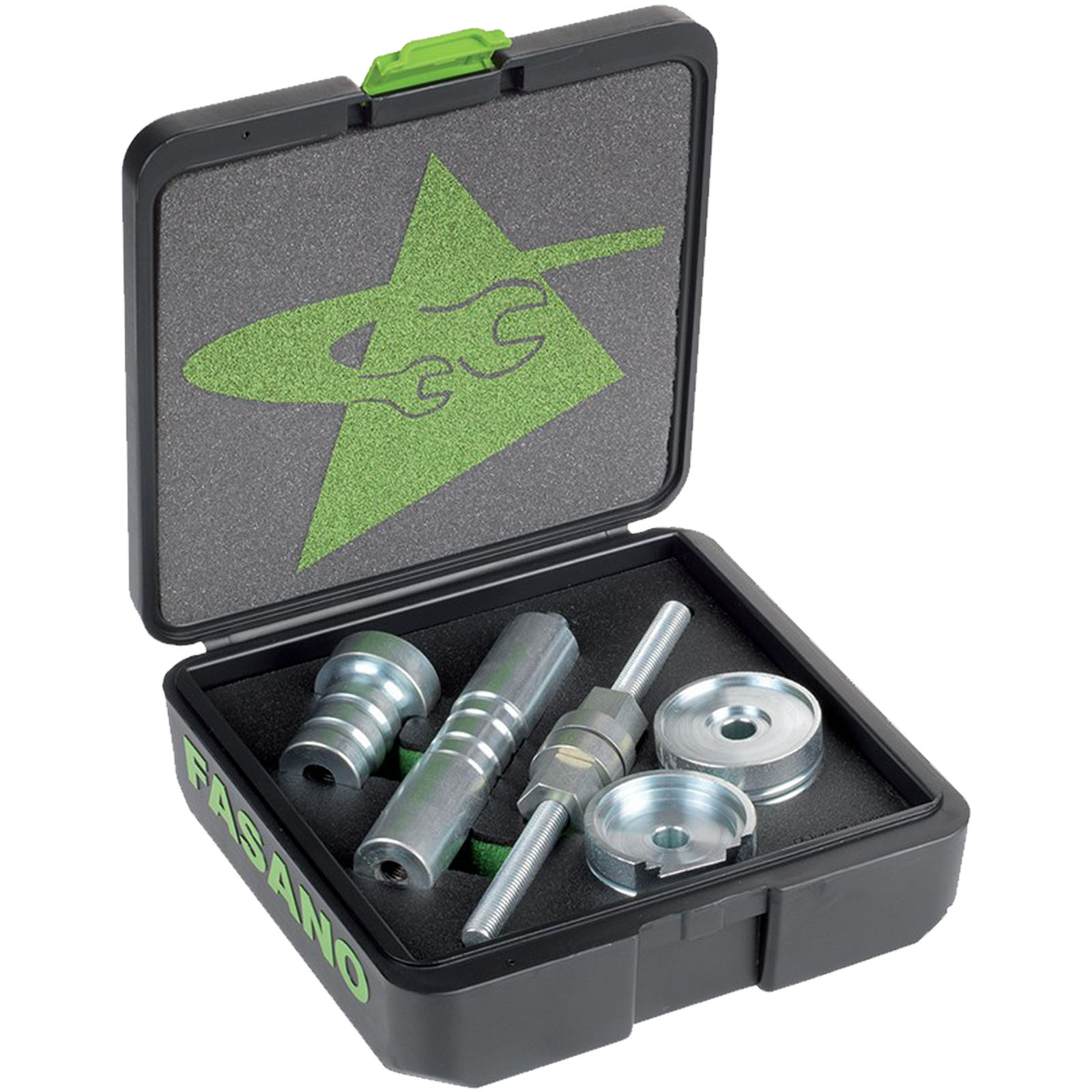 Fornito in modulo di gomma amovibile e box in ABS per il trasporto contenente: