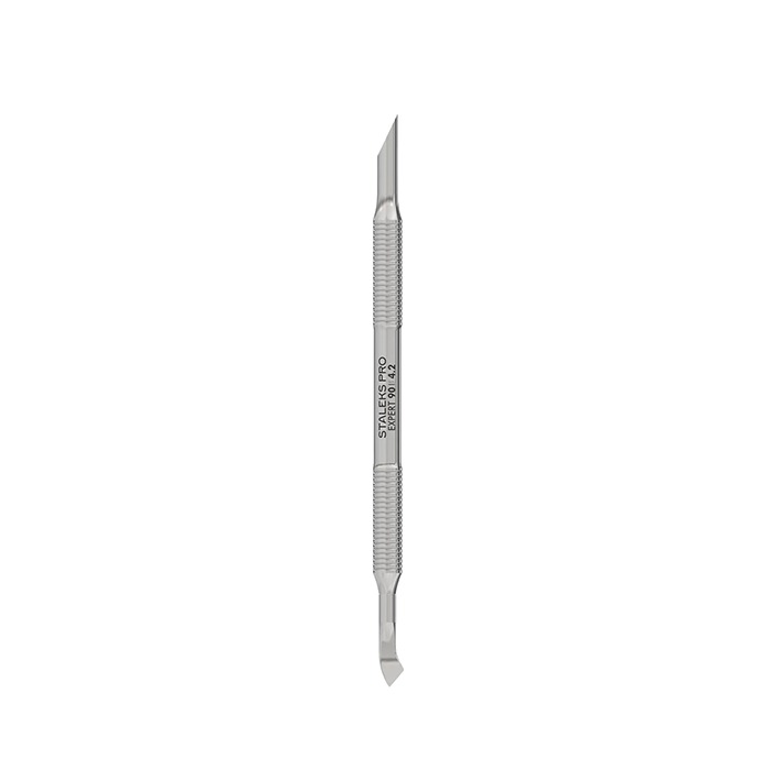 Ottieni una manicure impeccabile con lo spingicuticole Staleks EXPERT 90 TYPE 4.2. Questo strumento a doppia estremità combina un pusher obliquo e una lama piegata per sollevare le cuticole e pulire la lamina ungueale con facilità e precisione.