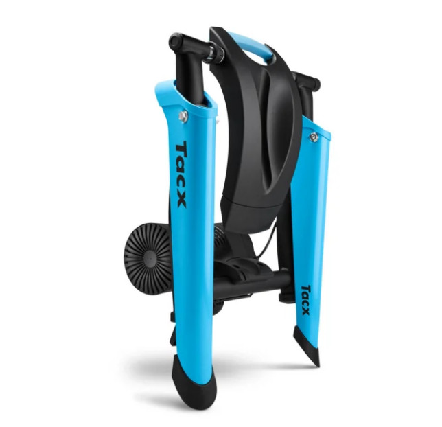 Il supporto multifunzionale della ruota anteriore funge da maniglia per trasportare il trainer e assicura una posizione di pedalata naturale.