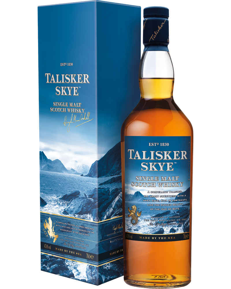 Scotch single malt prodotto dalla famosa distilleria Talisker dell’isola di Skye in Scozia. Un liquore di puro malto caratterizzato da una presenza di torba superiore alla media con una distillazione a cinque alambicchi e affinamento in botte.