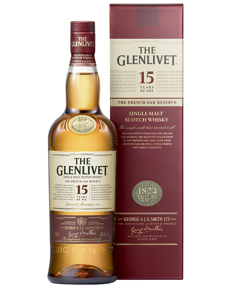 Single Malt Scotch Whisky è prodotto nell’omonima distilleria fondata da George Smith nel 1824 nello Speyside, zona a nord-est della Scozia da cui provengono alcuni dei migliori whisky al mondo. Glenlivet produce questo distillato partendo da un malto d’orzo in cui la materia prima viene direttamente selezionata dalle coltivazioni del Banffshire. L’acqua utilizzata proviene dal ruscello Josie’s Well e l’intero processo di lavoro si ripartisce fra 14 alambicchi, 7 utilizzati per la prima distillazione e 7 dedicati alla seconda. Una volta che si è concluso l’iter produttivo, durante il quale non viene utilizzata mai la torba, il Whisky viene fatto riposare per ben 15 anni in botti di rovere francese di Limousin, che una volta contenevano per lo più Cognac. Glenlivet è stata infatti una delle prime distillerie a utilizzare i legni di origine francese per far maturare i propri prodotti, usanza che poi è stata adattata e imitata in tutto il mondo.