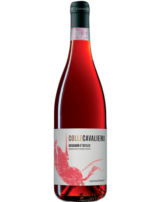 Vino rosato Cerasuolo d’Abruzzo DOP della Cantina Tollo per la linea Colle Cavalieri, ottenuto da uve montepulciano del territorio collinare abruzzese con metodi tradizionali. La Cantina Tollo è in attività dal 1960 come Cooperativa vitivinicola che ha accresciuto molto il suo prestigio in Europa e in paesi come Stati Uniti, Russia, India e Cina.