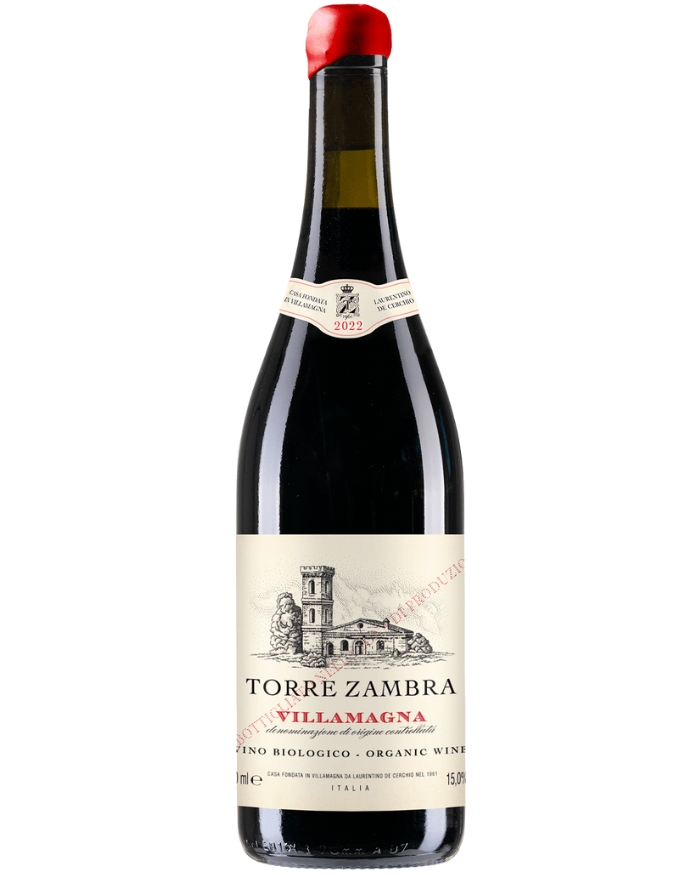 Vino rosso Montepulciano d’Abruzzo DOC Bio prodotto esclusivamente con uve Montepulciano d’Abruzzo coltivate secondo i principi dell’agricoltura biologica. La cantina Torre Zambra, situata a Villamagna (CH), è guidata dalla famiglia De Cerchio e si distingue per la valorizzazione del territorio e delle sue peculiarità. Le vigne sono allevate con il sistema della pergola abruzzese, con una resa di 120 quintali per ettaro. La vendemmia avviene negli ultimi dieci giorni di ottobre. La vinificazione prevede una lunga macerazione sulle bucce di 45 giorni e fermentazione in acciaio inox a 28–30 °C. Il vino matura per 6 mesi in vasche di cemento, seguito da 10 mesi in tonneaux di rovere francese e slavo (50% nuovi e 50% di secondo passaggio), e ulteriori 6 mesi di affinamento in bottiglia.
