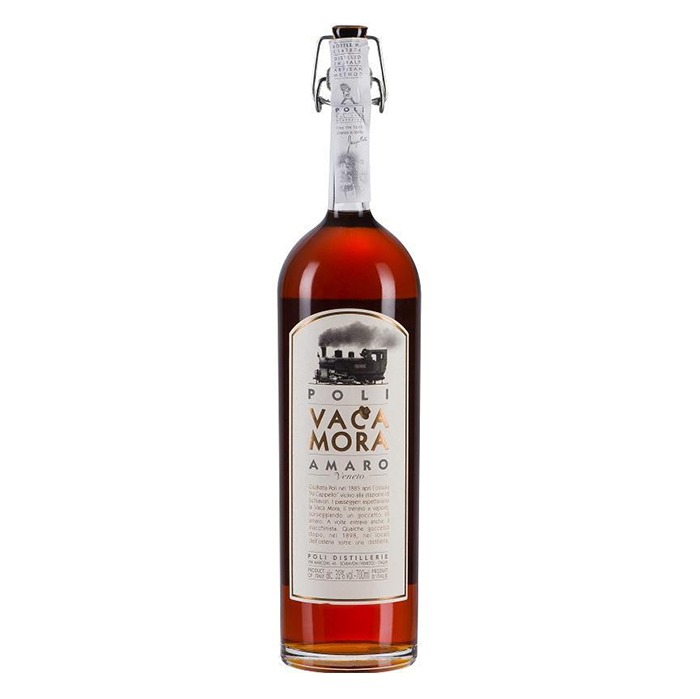 Vaca Mora Amaro Poli è un amaro ottenuto per infusione in Grappa e alcool di erbe aromatiche. GioBatta Poli nel 1885 aprì l’osteria “Al Cappello” vicino alla stazione di Schiavon. I passeggeri aspettavano la Vaca Mora, il trenino a vapore, sorseggiando un goccetto di amaro.