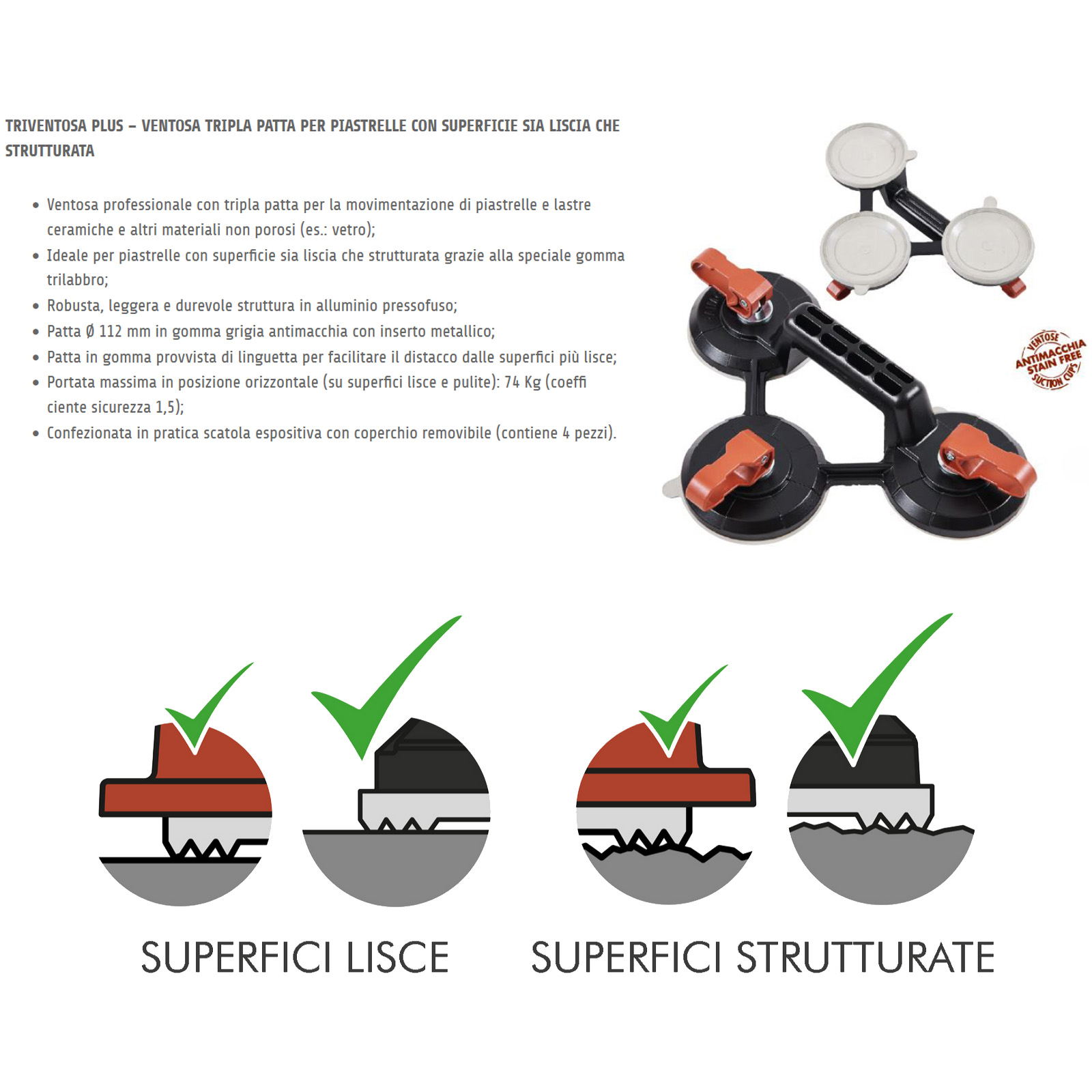 Ventosa Tripla Patta RAIMONDI per Piastrelle Lisce e Strutturate modello TRIVENTOSA PLUS articolo 185TRI
