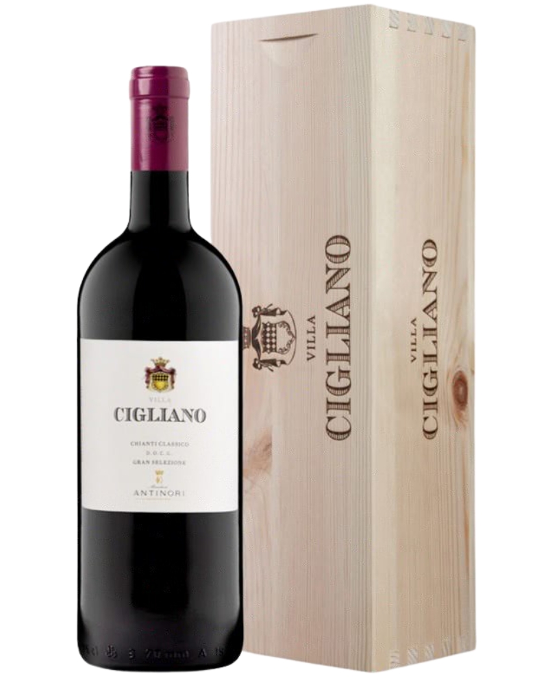 Chianti Classico DOCG prodotto dalla storica Tenuta Villa del Cigliano, legata alla famiglia Antinori sin dal XVI secolo. Situata a San Casciano in Val di Pesa, nel cuore del Chianti Classico, la tenuta vanta vigneti di Sangiovese coltivati su terreni ricchi di galestro e alberese. La vinificazione prevede una fermentazione in serbatoi di acciaio inox a temperatura controllata, seguita da un affinamento in botti di rovere per esaltare la complessità e l’eleganza del vino.
