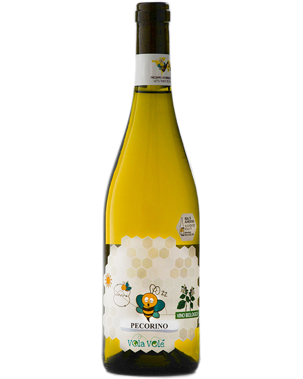 Vino bianco Pecorino a marchio Vole Volè, caratteristico per la fermentazione spontanea su lieviti derivanti da pollini. Un vino biologico fresco e fruttato, con un tocco acidulo e un sapore intenso. Ideale per antipasti, primi piatti e arrosti leggeri. Da provare con la pizza.